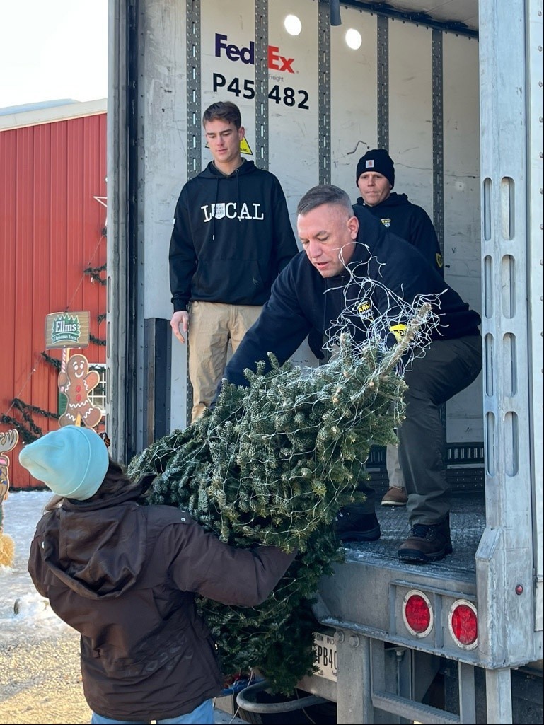 WHO: Soldiers from the New York National Guard volunteer their time from work to assist the loadout of holiday trees at Ellms Tree Farm for Trees for Troops.