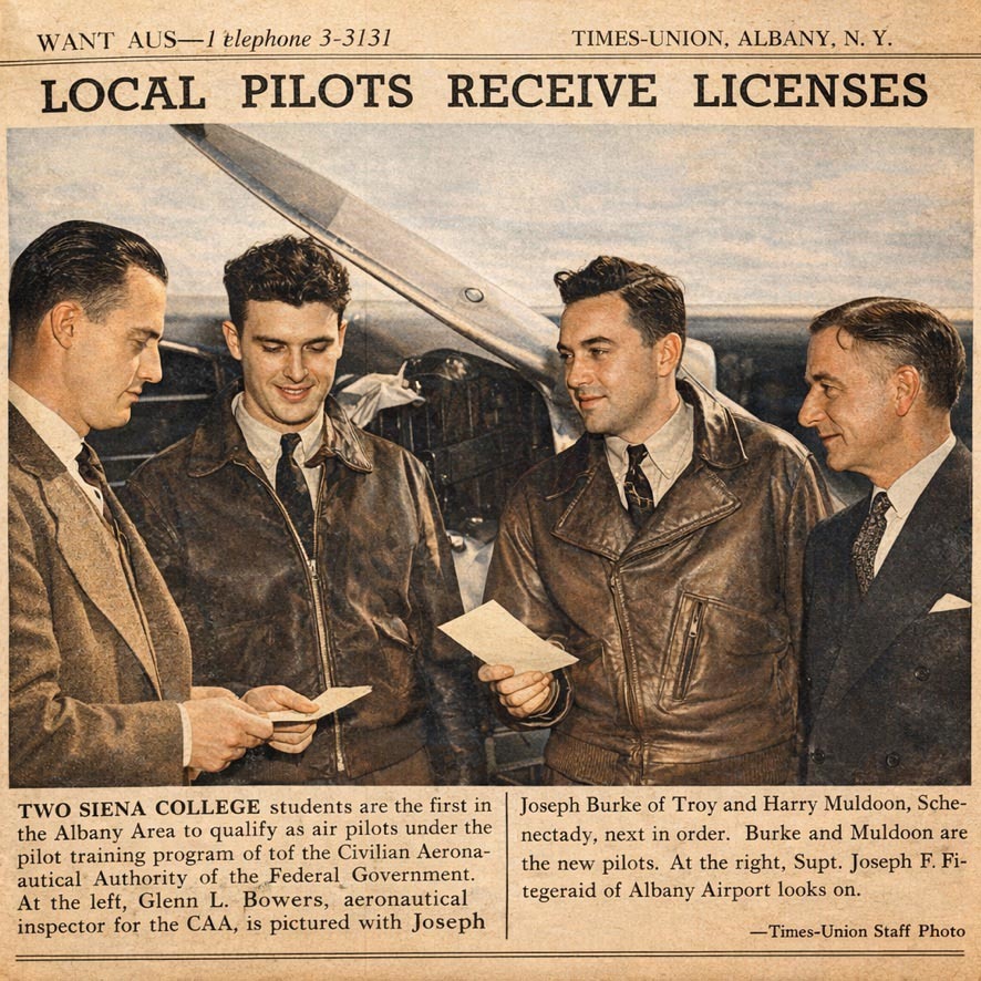 During this time, he learned to fly at Albany Airport as part of the federal Civilian Pilot Training Program.