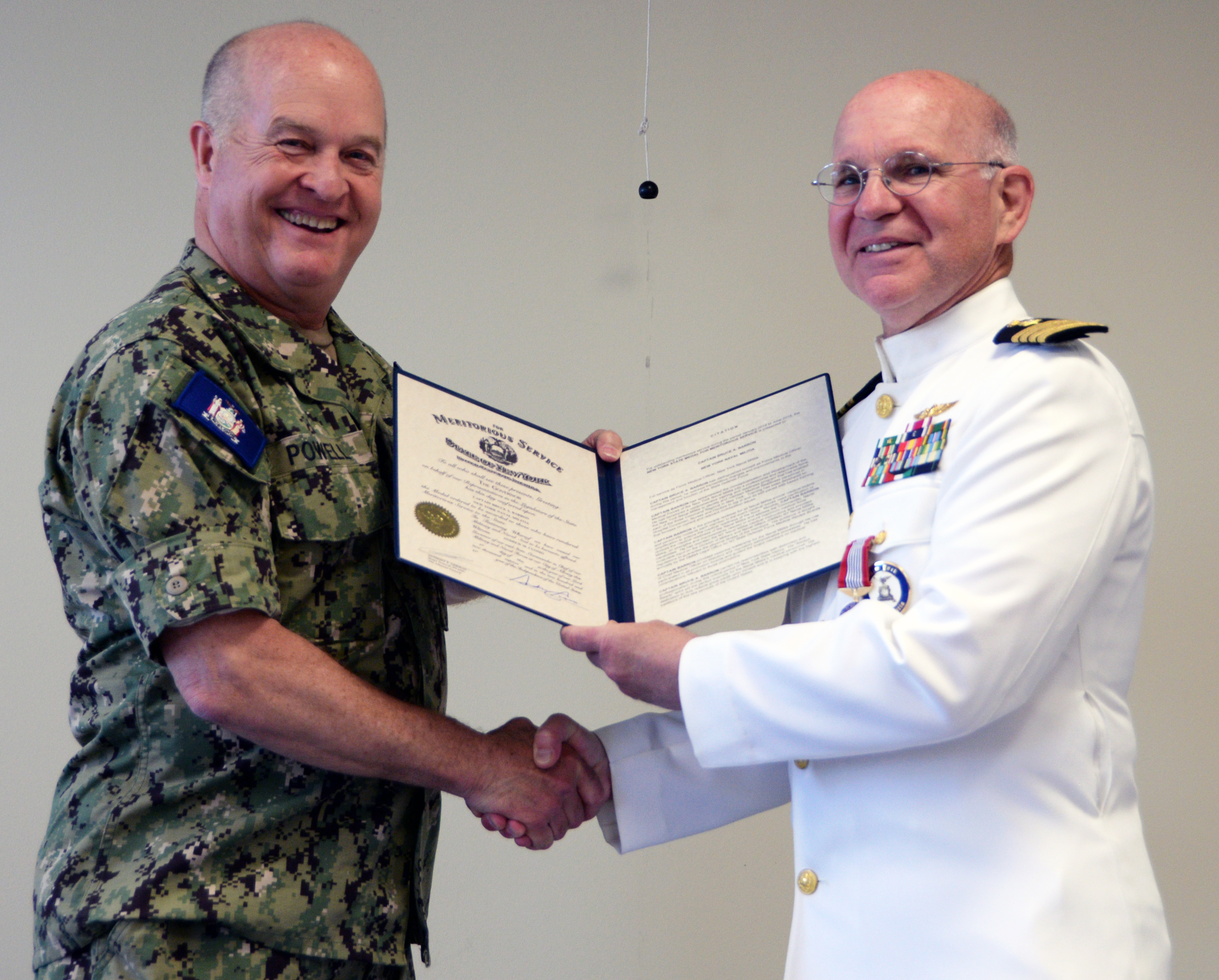It was presented to Barron during a June 22 ceremony prior to a change of command ceremony in which responsibility for the New York Naval Militia passed from Naval Militia Rear Admiral Ten Eyck Powell to Rear Admiral Timothy Zakriski.