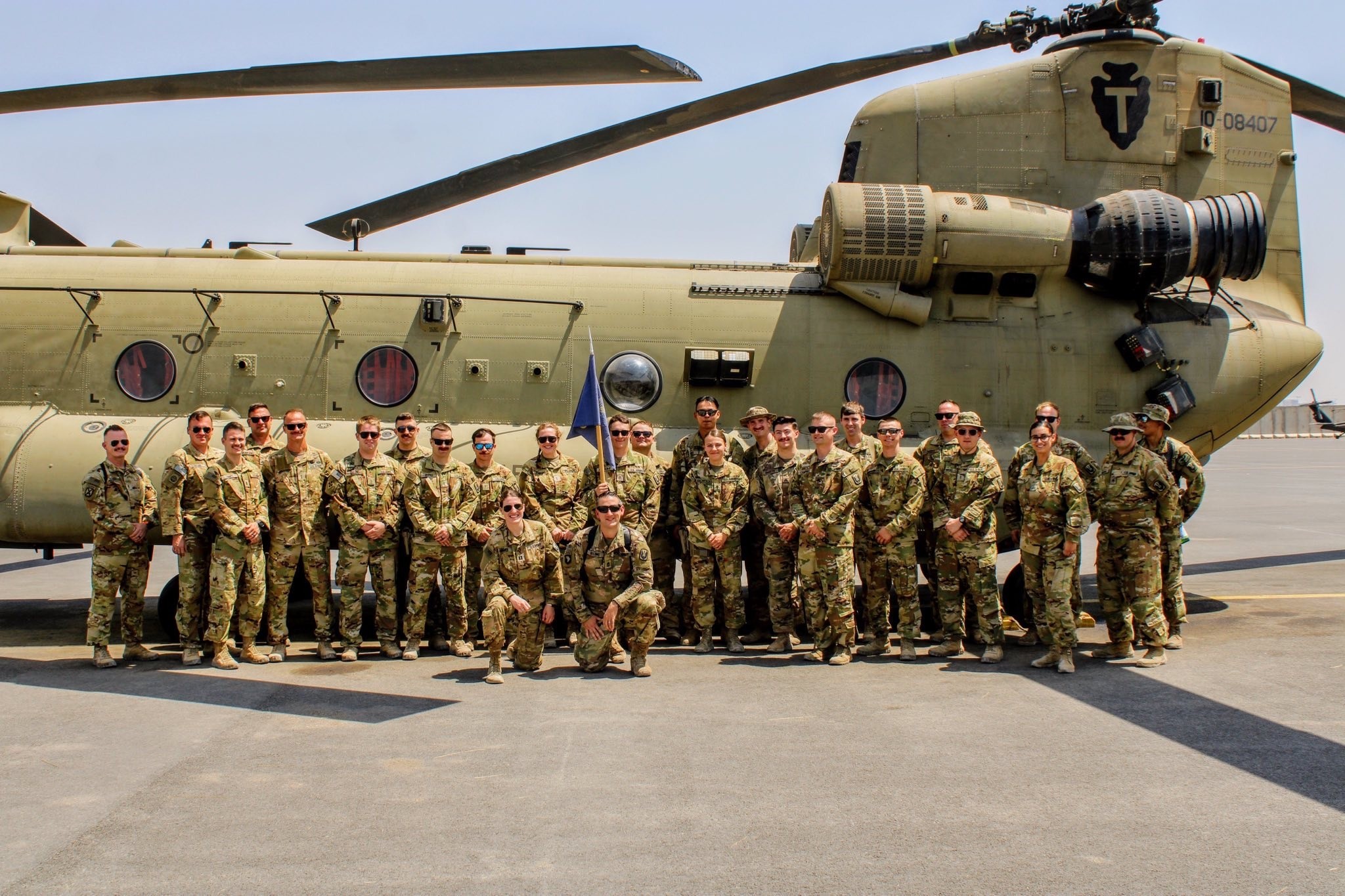 According to a translation of the French citation, the six members of B Company, 3rd Battalion, 126th General Support Aviation Battalion, a New York Army National Guard CH-47F Chinook heavy lift helicopter unit, were on standby at Erbil Air Base in the Kurdistan region of northern Iraq as part of Operation Inherent Resolve. This is the effort to counter Islamic State terrorist operations in the region.