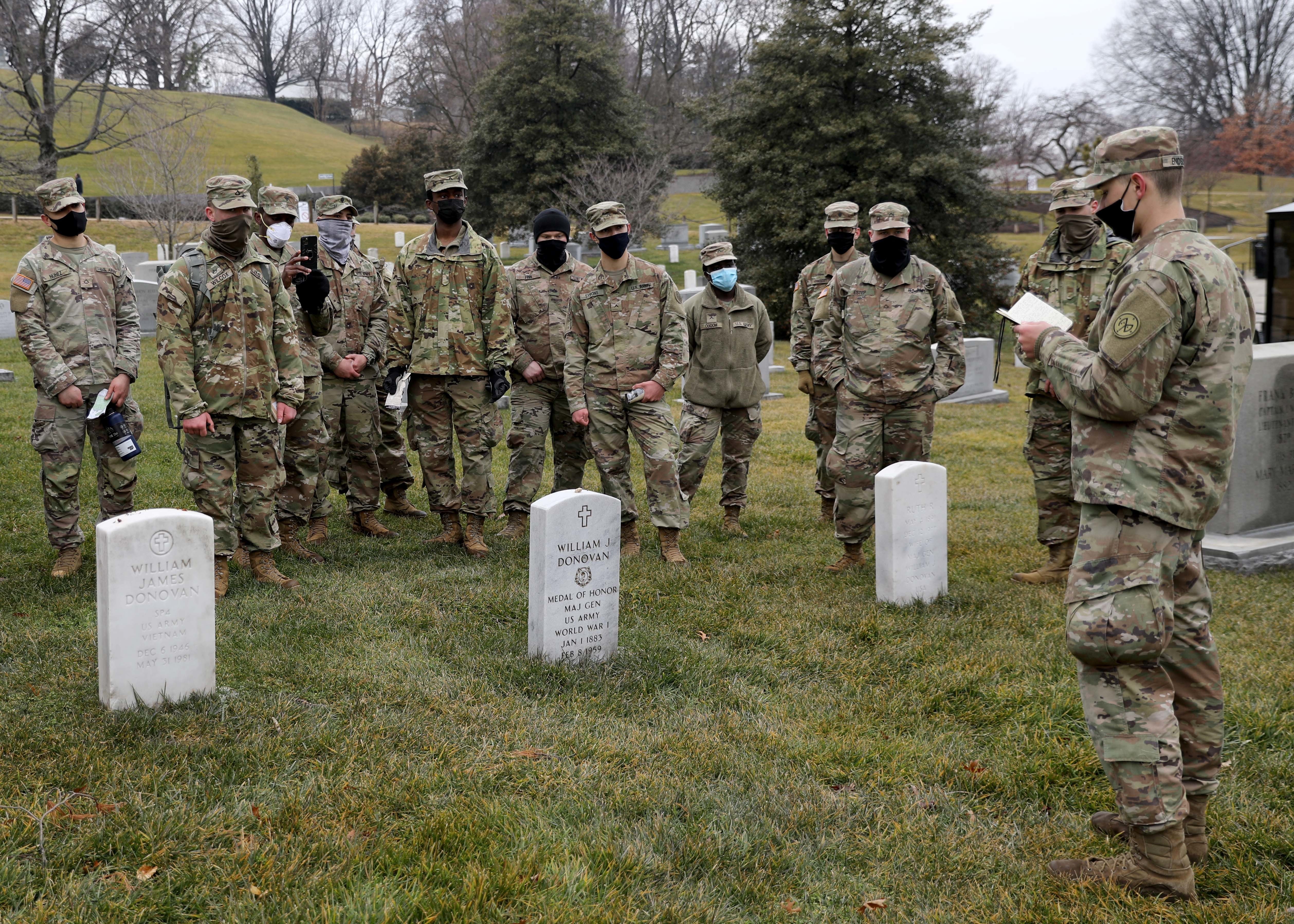 Arlington, VA (02/22/2021) — New York National Guard Soldiers assigned to the 2nd Battalion of the 108th Infantry Regiment which is headquartered in Utica, visited the graves of New York National Guard Soldiers interred at Arlington National Cemetery during a break from their security mission in Washington, D.C. on February 14.